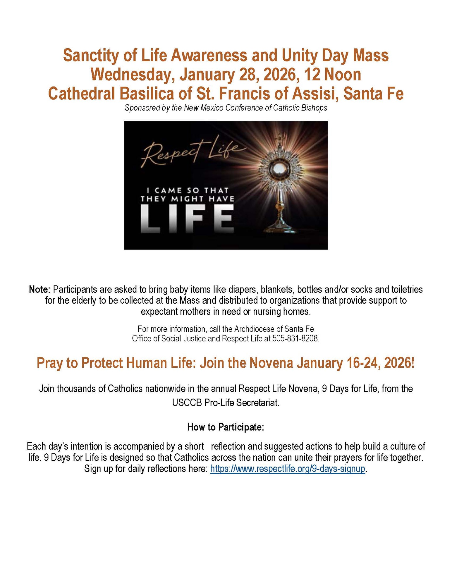 Respect Life Month is observed annually in October. Each year, the United States Conference of Catholic Bishops produces a packet of material available for all parishes and groups to help Catholics understand, value, and become engaged with supporting the God-given dignity of every person—which naturally leads to protecting the gift of every person's life. Information can be found and downloaded here.